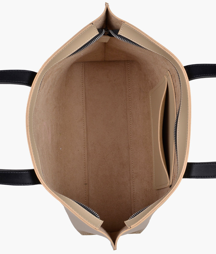 - One main zipper compartment, one front pocket with zipper and one slide pocket inside.